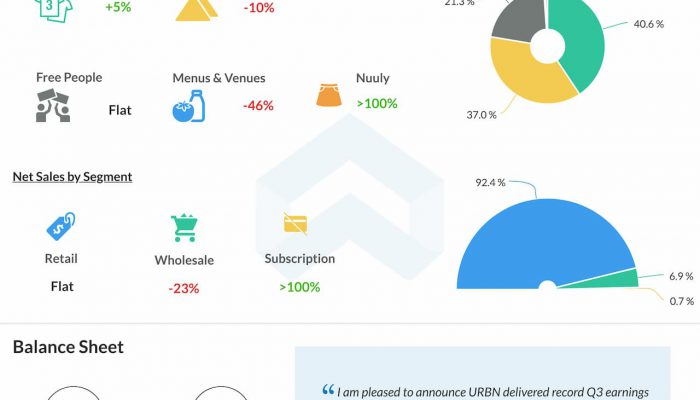 Urban Outfitters, Inc. (NASDAQ: URBN) reported third quarter 2021 earnings results today. Net sales decreased 1.8% year-over-year to $970 million. Net income was