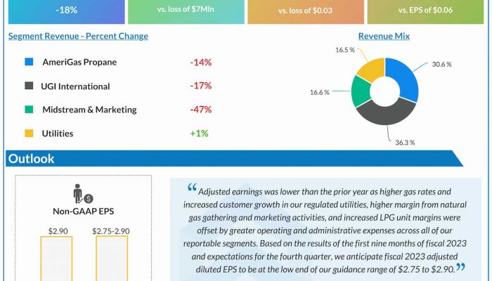 Energy company UGI Corporation (NYSE: UGI) reported a double-digit fall in revenues for the third quarter of 2023. The company also provided guidance