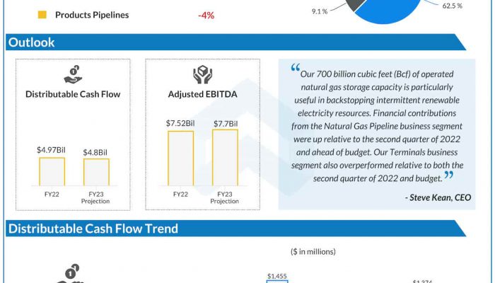 Kinder Morgan, Inc. (NYSE: KMI) has reported a decrease adjusted earnings and revenues for the second quarter of 2023. The energy infrastructure