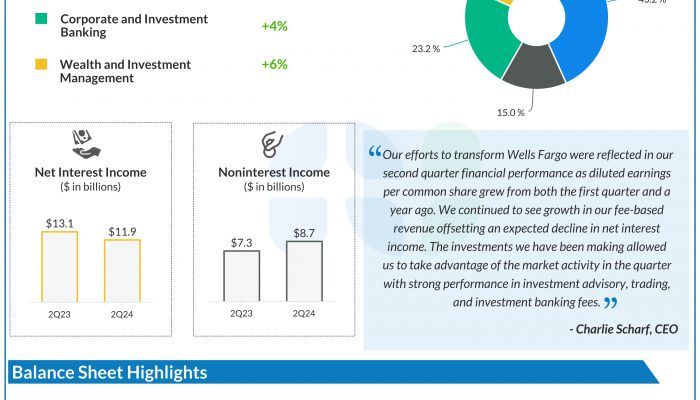 Wells Fargo & Company (NYSE: WFC) reported its second quarter 2024 earnings results today. Total revenue rose 1% year-over-year to $20.7 billion.