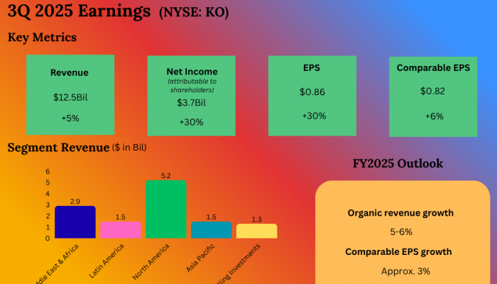 The Coca-Cola Company (NYSE: KO) reported its third quarter 2025 earnings results today. Net revenues grew 5% year-over-year to $12.5 billion. Organic