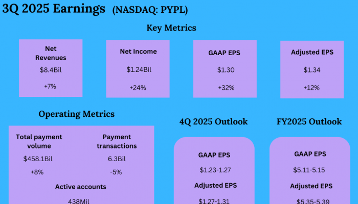 PayPal Holdings, Inc. (NASDAQ: PYPL) reported its third quarter 2025 earnings results today. Net revenues increased 7% year-over-year to $8.4 billion. Revenues