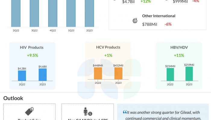 Gilead Sciences, Inc. (NASDAQ: GILD) reported total revenue of $6.6 billion for the second quarter of 2023, which was up 5% year-over-year.