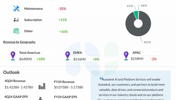 Autodesk, Inc. (NASDAQ: ADSK) has constantly diversified its business over the years, distributing across multiple industries and geographies. Those initiatives have enabled