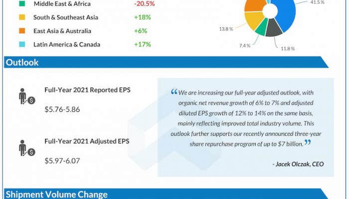Philip Morris International Inc. (NYSE: PM) reported second quarter 2021 earnings results today. Net revenues increased 14.2% year-over-year to $7.6 billion. Reported