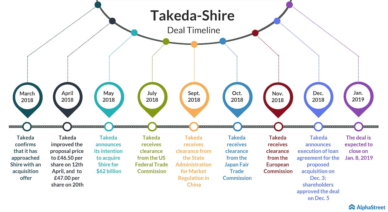 Takeda Pharmaceutical and Shire Plc announced that their shareholders have approved the $62 billion merger transaction. Takeda said that at least 88% of votes were exercised in favor of the Shire acquisition. Shire shareholders had also approved the takeover of the company by the Takeda. The acquisition is touted to be sealed on January 8, 2019.