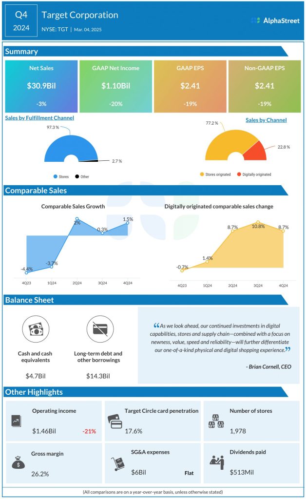 For fiscal year 2025, Target has forecasted net sales growth of around 1% with flat comparable sales. GAAP and adjusted EPS are expected to range between $8.80-9.80.