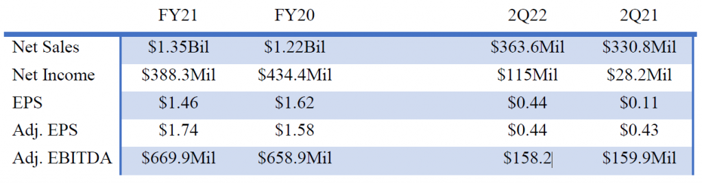 In fiscal 2021, GrafTech’s net sales increased 10% annually to $1.35 billion. As a result, adjusted earnings moved up 10% to $1.74 per share. Meanwhile, net income decreased to $388.3 million or $1.46 per share from $434.4 million or $1.62 per share in fiscal 2020. Adjusted EBITDA was $670 million, which is up 2%. As of June 30, 2022, the company had cash and cash equivalents of $56 million and total debt of around $920 million.