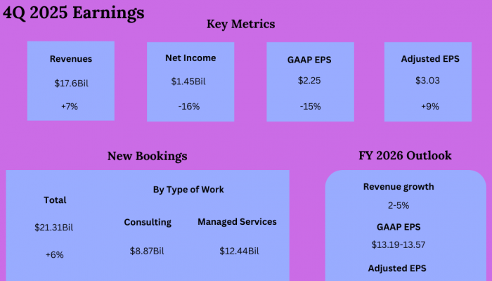 Accenture (NYSE: ACN) reported its fourth quarter 2025 earnings results today. Revenues of $17.6 billion were up 7% in US dollars and