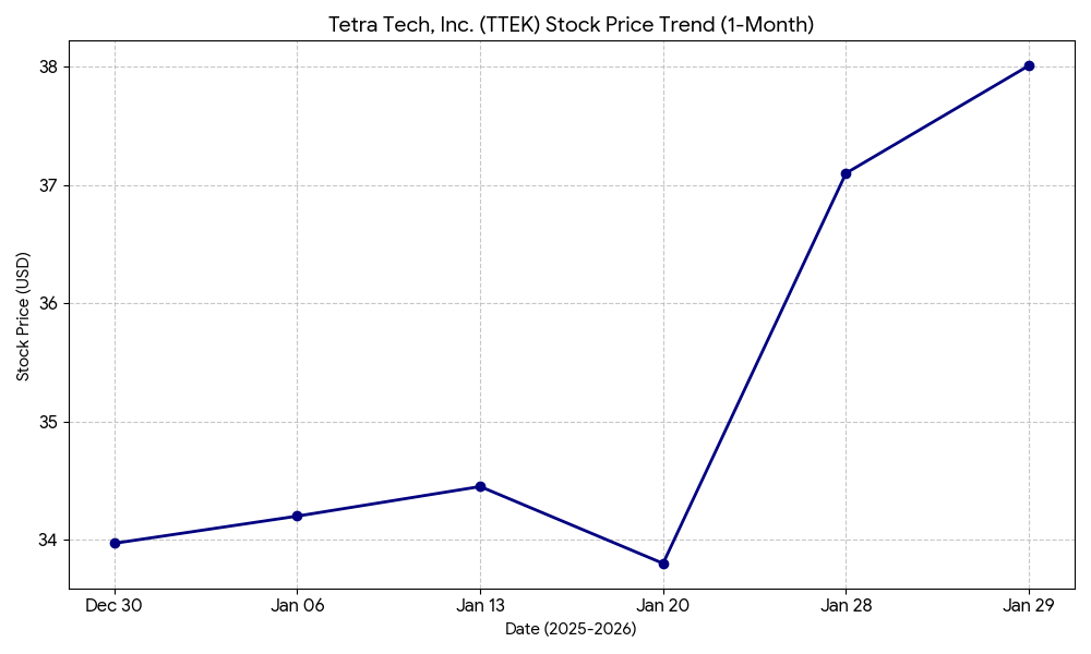 Tetra Tech, Inc. (NASDAQ: TTEK) shares rose 2.45% during intraday trading on January 29, 2026. The move followed the company’s release of its financial results for the first quarter of fiscal year 2026, which ended December 28, 2025. Market data reflects the closing trend as of January 30, 2026. As of today’s market close, the market capitalization of Tetra Tech, Inc. stands at approximately $9.96 billion.