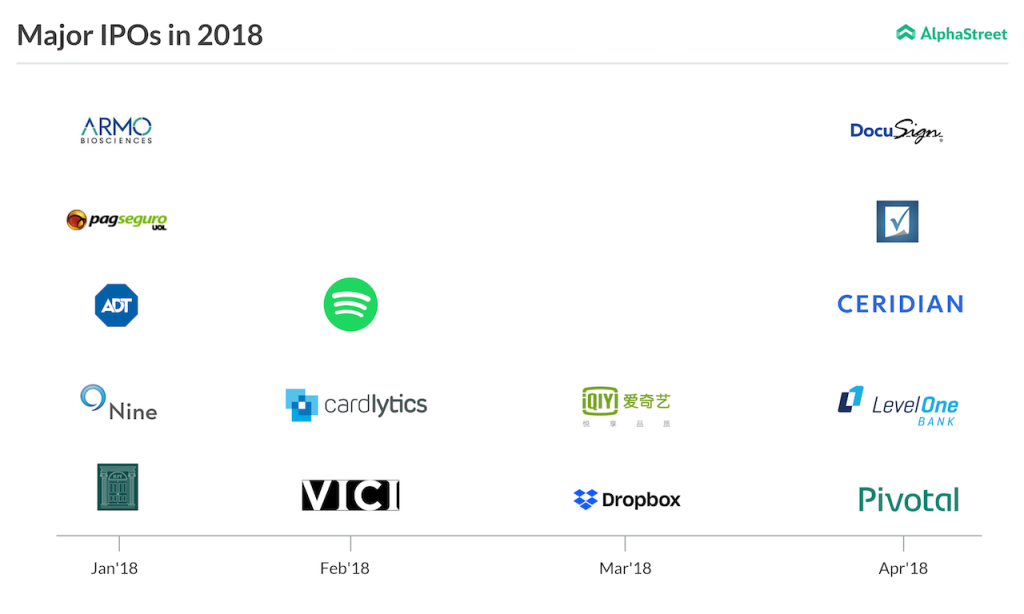 In the streaming segment, Spotify was joined by yet another foreign company – iQIYI (IQ), often referred to as the Netflix of China, raised $2.3 billion by selling American depositary shares at $18 apiece. Since its March 29 debut, IQ’s price has more than doubled, and Spotify is up by around 17%. Meanwhile, Spotify raised quite a few eyebrows by doing away with underwriters and promotional activities, allowing stockholders to sell their shares directly to the public.