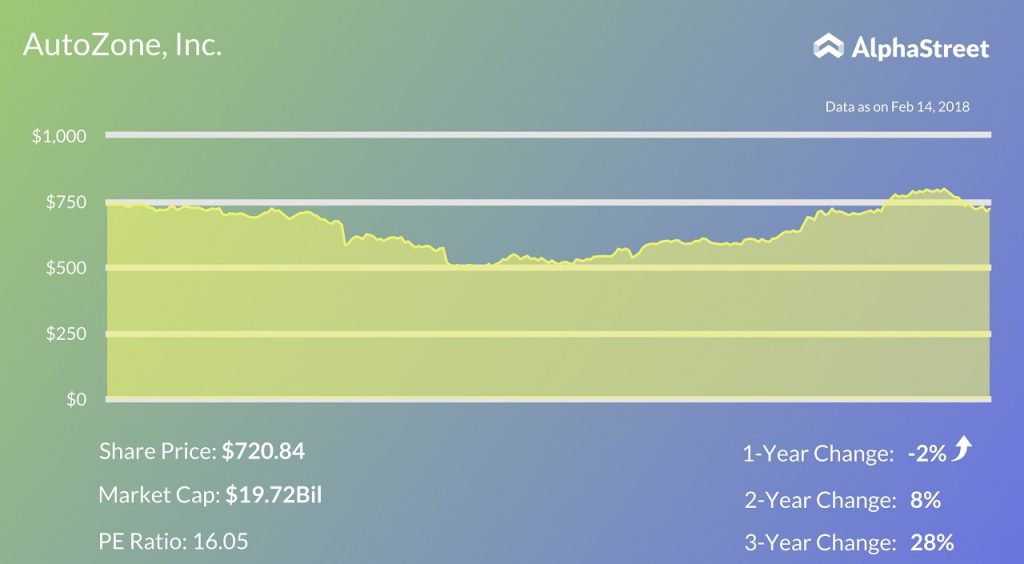 Shiver not by seeing the 1-year decline. Vehicles are deteriorating assets and require maintenance all the time. Autozone has over 5,300 service centres for the same. The company has a well-diversified portfolio of parts and supplies, and last year’s plunge was caused more-or-less due to the volatile nature of the sector it operates in.