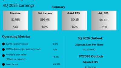 American Airlines Group (NASDAQ: AAL) reported its fourth quarter 2025 earnings results today. Total operating revenues increased 2.5% year-over-year to $14 billion. Net income decreased 83%…