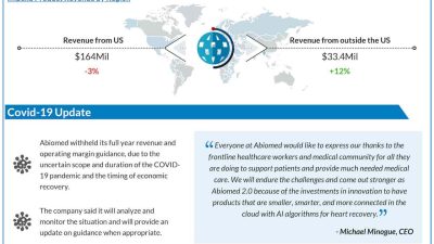 — Medical device maker Abiomed, Inc. (NASDAQ: ABMD) reported net income of $69.2 million or $1.51 per share for the third quarter of 2020, vs.…