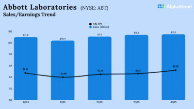 Medical device maker Abbott Laboratories (NYSE: ABT) on Thursday reported a 4% increase in sales for the fourth quarter of FY25. The company also issued…