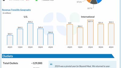 Beyond Meat, Inc. (NASDAQ: BYND), a food company that provides plant-based meat products, on Thursday reported a narrower net loss for the fourth quarter of…
