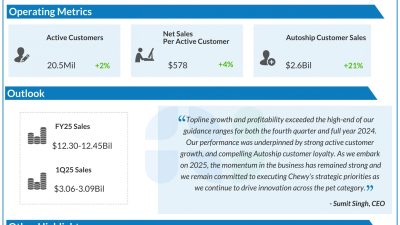 Chewy, Inc. (NYSE: CHWY) reported its fourth quarter 2024 earnings results today. Net sales of $3.25 billion were up 14.9% year-over-year. Net income fell 29%…