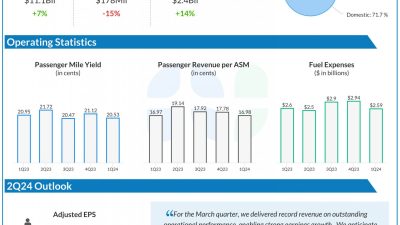Delta Air Lines (NYSE: DAL) reported its second quarter 2024 earnings results today. Operating revenue increased 7% year-over-year to $16.6 billion. Net income decreased 29%…