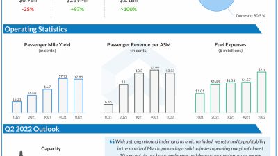 Delta Air Lines (NYSE: DAL) reported second quarter 2022 earnings results today. Total operating revenues amounted to $13.8 billion, which was up 10% compared to…