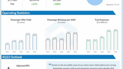 Shares of Delta Air Lines Inc. (NYSE: DAL) were up 4% on Thursday despite the company delivering mixed results for the third quarter of 2022.…