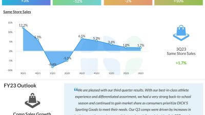 DICK’S Sporting Goods, Inc. (NYSE: DKS) reported third quarter 2023 earnings results today. Net sales increased 2.8% year-over-year to $3 billion. Comparable store sales were up…