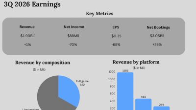 Video game company Electronic Arts Inc. (NASDAQ: EA) on Wednesday reported a decline in third-quarter 2026 earnings, despite an increase in revenues. Net revenue increased…