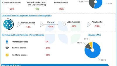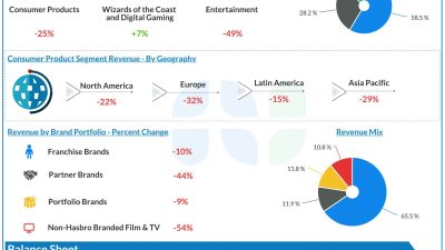 Shares of Hasbro, Inc. (NASDAQ: HAS) fell over 5% on Wednesday. The stock has gained 23% year-to-date. The toymaker saw revenues decline double-digits in the…