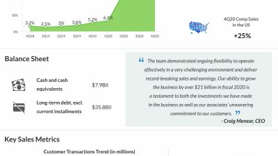 The Home Depot, Inc. (NYSE: HD) reported fourth-quarter 2020 earnings results today. Net sales increased 25.1% year-over-year to $32.3 billion. Comparable sales were a positive…