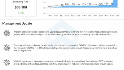 The Kroger Co. (NYSE: KR) reported a 57% jump in earnings for the first quarter of 2020 driven by higher sales. The significant investments in…