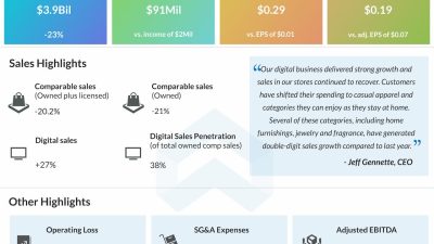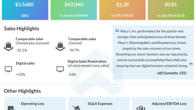 Macy’s Inc. (NYSE: M) saw a double-digit sales decline in its most recent quarter along with an adjusted loss. Comparable sales were down both on…