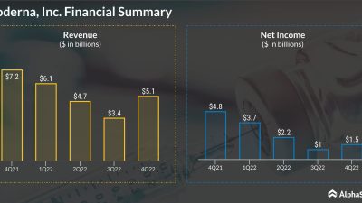 Moderna Inc. (NASDAQ: MRNA) reported total revenue of $5.1 billion for the fourth quarter of 2022, down 29% year-over-year due to a drop in COVID-19…