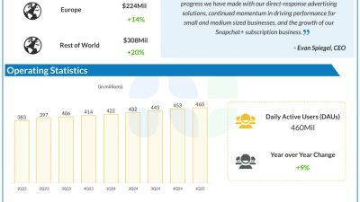 Snap Inc. (NYSE: SNAP) reported its earnings results for the third quarter of 2025. Revenue increased 10% year-over-year to $1.50 billion. Net loss was $104…