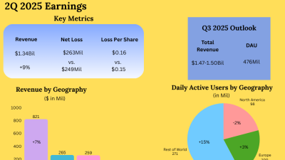 Snap Inc. (NYSE: SNAP) reported its second quarter 2025 earnings results. Revenue was $1.34 billion, up 9% year-over-year. Net loss was $263 million, or $0.16…