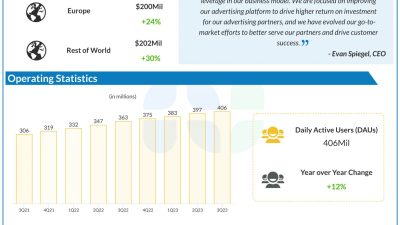 Snap Inc. (NYSE: SNAP) reported revenues of $1.18 billion for the third quarter of 2023, which was up 5% year-over-year. Net loss was $368 million,…
