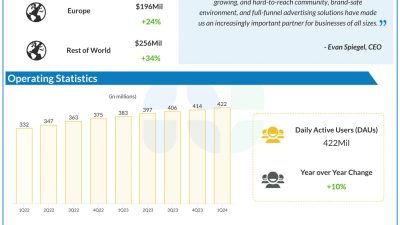 Snap Inc. (NYSE: SNAP) reported revenue of $1.36 billion, up 5% year-over-year. Net loss was $248 million, or $0.15 per share, compared to $288 million,…