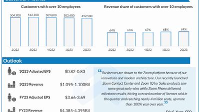 Zoom Video Communications (NASDAQ: ZM) reported lower earnings and higher revenues for the third quarter of 2023. Earnings beat, while the top line matched the…