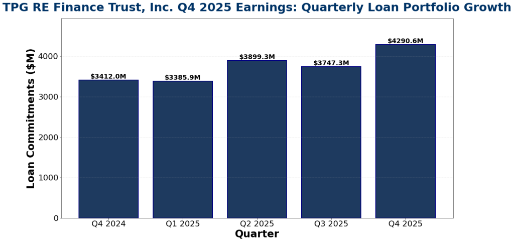 TPG RE Finance Trust, Inc. Q4 2025 earnings showed quarterly loan portfolio expansion, with commitments reaching $4.3 billion at year-end.