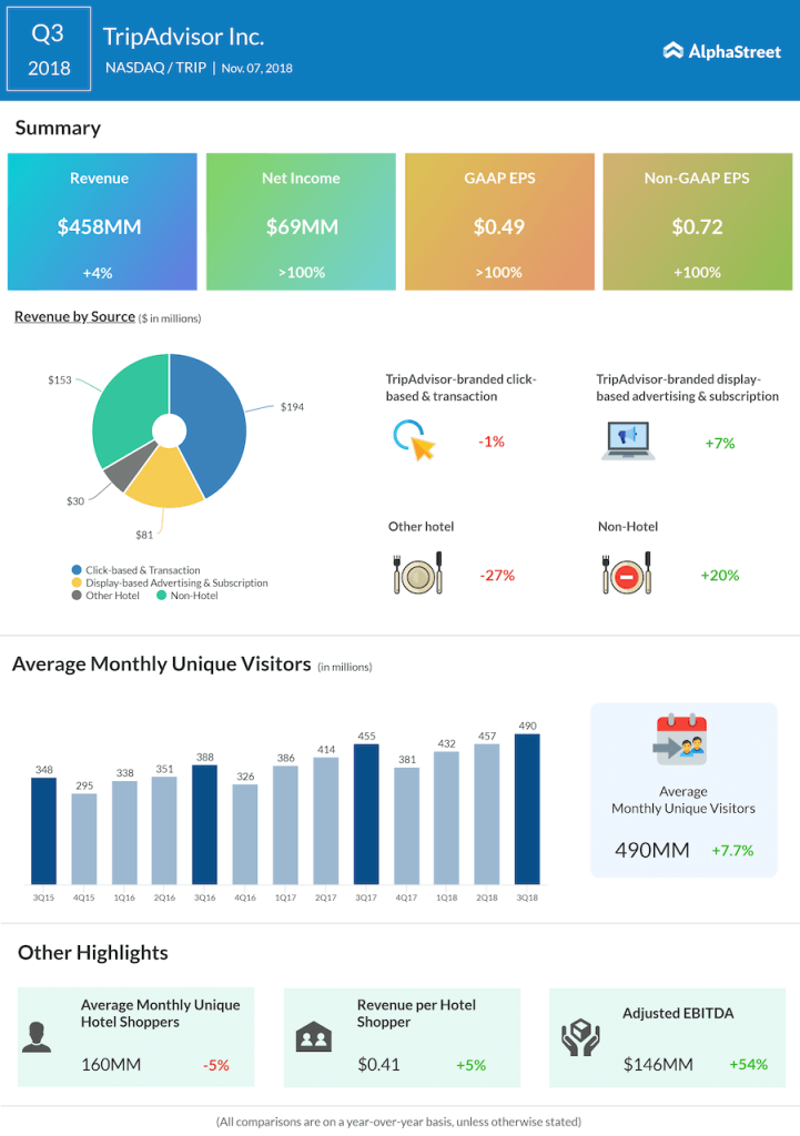 TripAdvisor shares have gained 64% so far this year. The stock gained 8% during pre-market trading on Thursday.