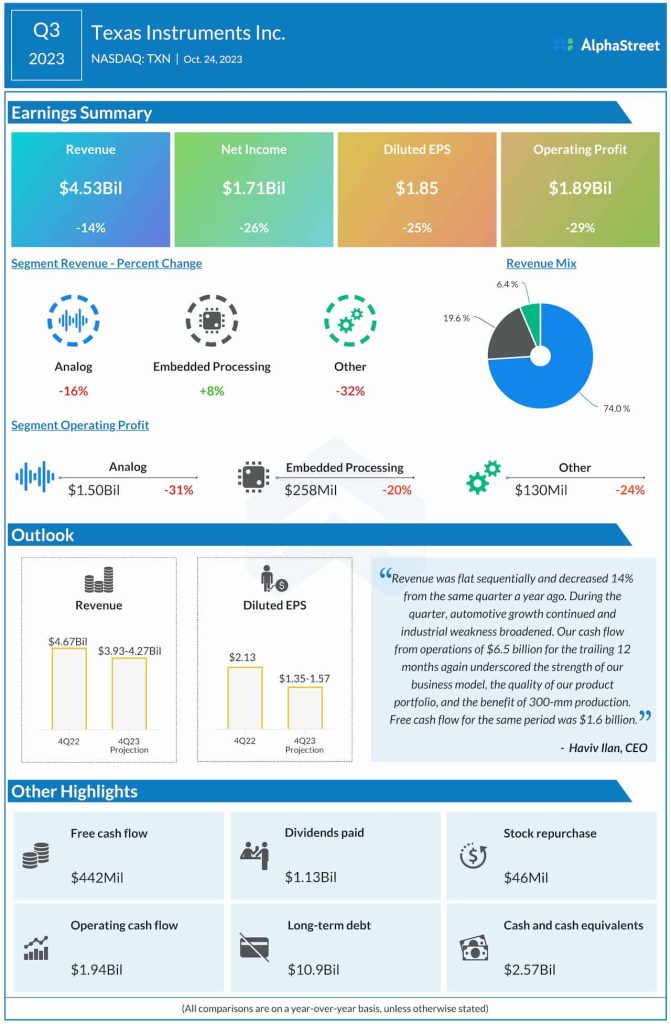 The bottom line was negatively impacted by a 14% fall in revenues to $4.53 billion. For the fourth quarter of 2023, the management expects revenues to be in the range of $3.93 billion to $4.27 billion, and earnings per share between $1.35 and $1.57.
