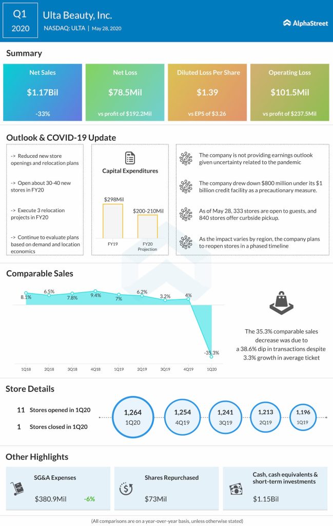 Given the uncertainty related to the COVID-19 pandemic, the company is not providing an earnings outlook at this time. The company has reduced its new store opening and relocation plans given the current environment. The company now expects to open between 30 and 40 new stores and execute about three relocation projects. Also, the company cut its capital expenditure plan for FY20 to the range of $200-210 million from the previous range of $280-300 million.