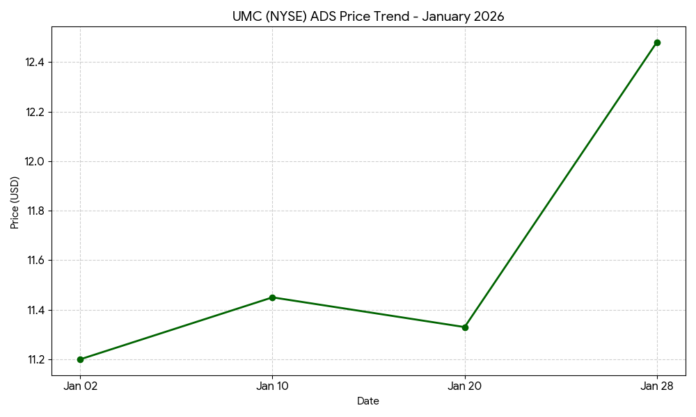 United Microelectronics Corporation (NYSE: UMC; TWSE: 2303), a global semiconductor foundry, saw its shares increase sharply on Wednesday. The company’s American Depositary Shares (ADS) closed at $12.48, representing an intraday increase of 10.15%. The move followed the announcement of the company’s unaudited financial results for the quarter and fiscal year ending December 31, 2025.