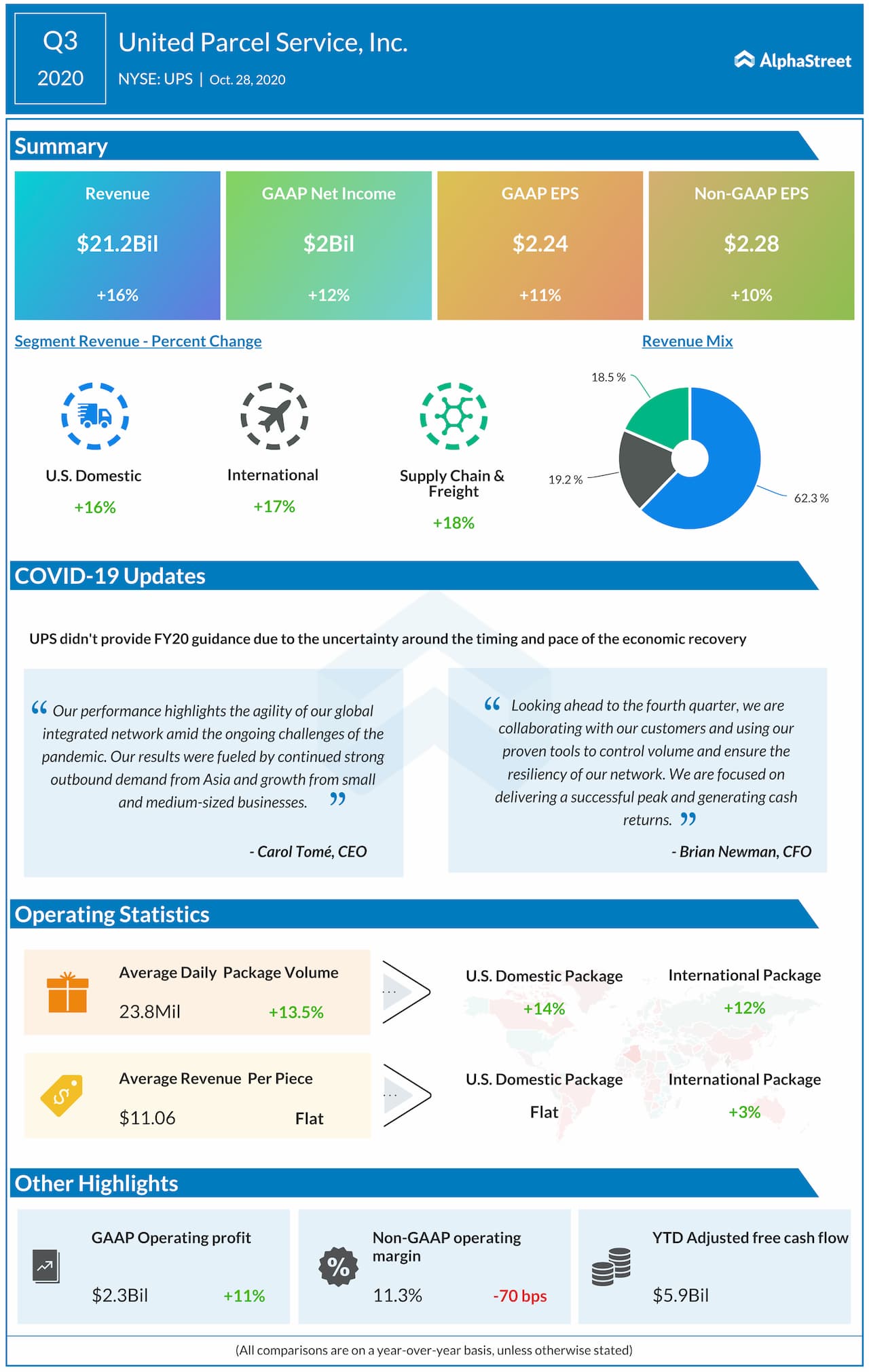United Parcel Service (NYSE: UPS) reported third quarter 2020 earnings results today.