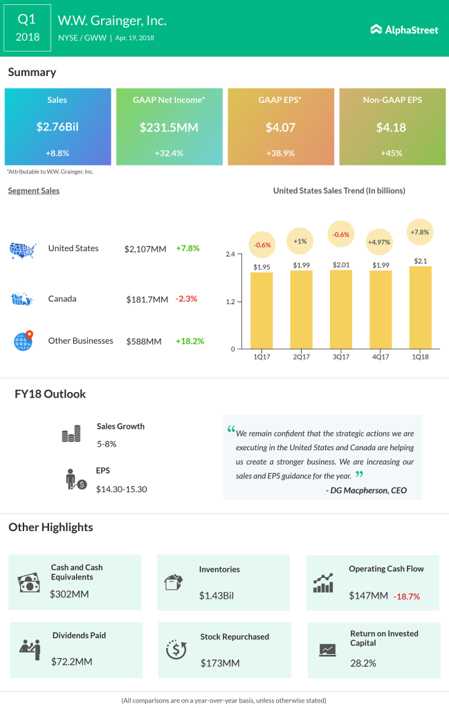 Grainger’s price reduction strategy to tackle competition from Amazon and its peers seem to be bearing fruit. On top of that, the company has reported volume growth due to strong demand in the Industrial sector for the past two quarters. Grainger’s share price has increased 29% in 2018, exceeding the 16% growth recorded by the US Industrial Index.
