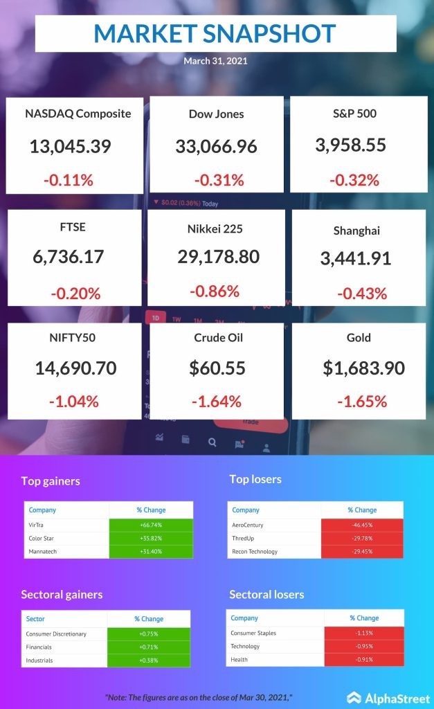 US pre-market news: Dow Jones, NASDAQ, S&P updates for Mar. 31, 2021