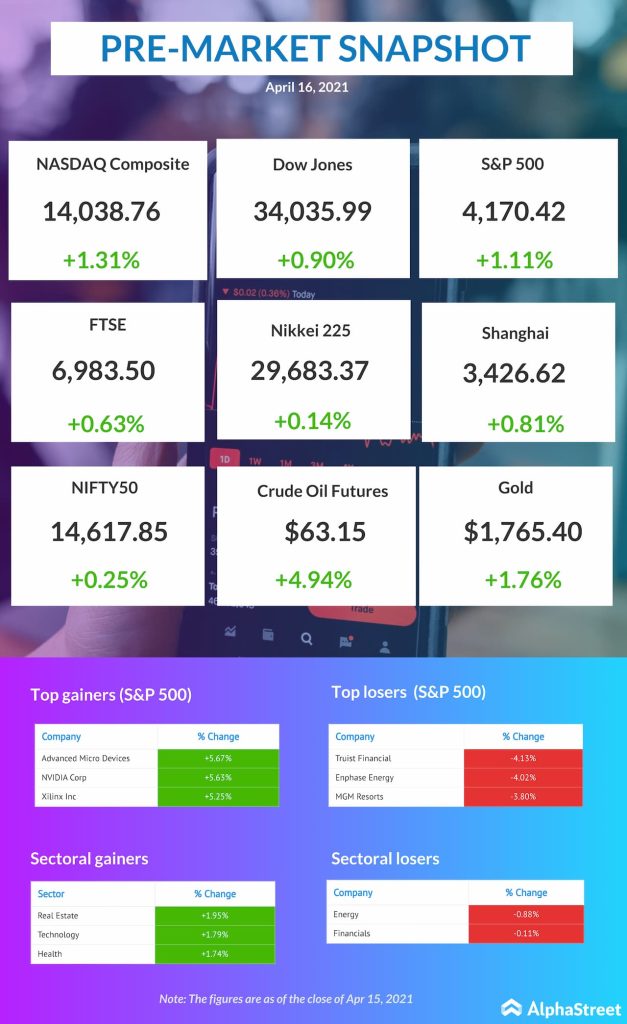 US pre-market news: Dow Jones, NASDAQ, S&P updates for Apr.16, 2021