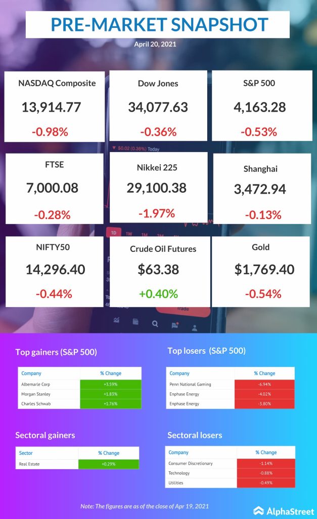 US pre-market news: Dow Jones, NASDAQ, S&P updates for Apr.20, 2021