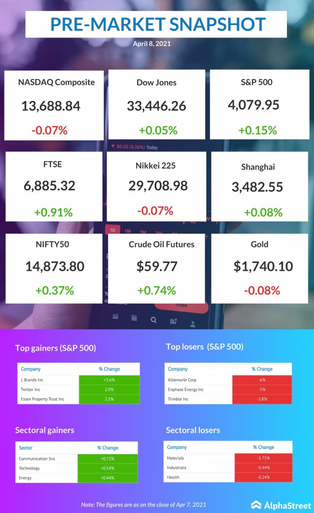 US pre-market news: Dow Jones, NASDAQ, S&P updates for Apr.8, 2021