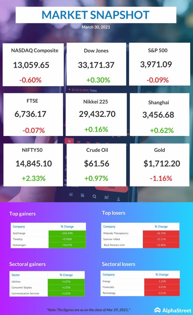 US pre-market news: Dow Jones, NASDAQ, S&P updates for Mar. 30, 2021