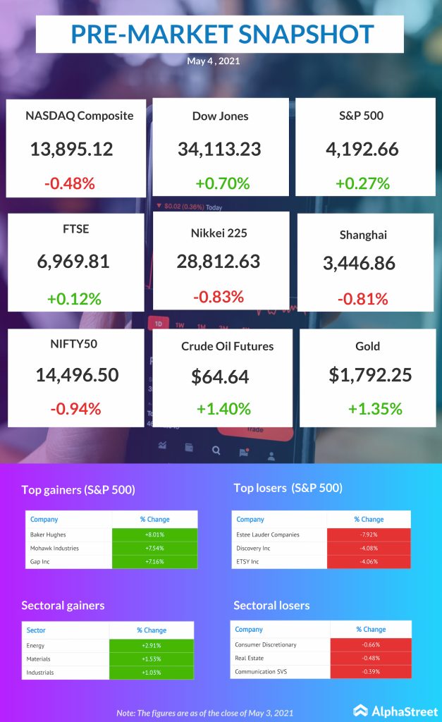 US pre-market news: Dow Jones, NASDAQ, S&P updates for May 04, 2021