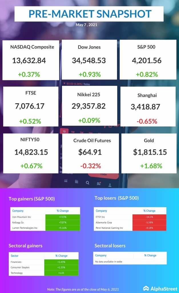 US pre-market news: Dow Jones, NASDAQ, S&P updates for May 7, 2021